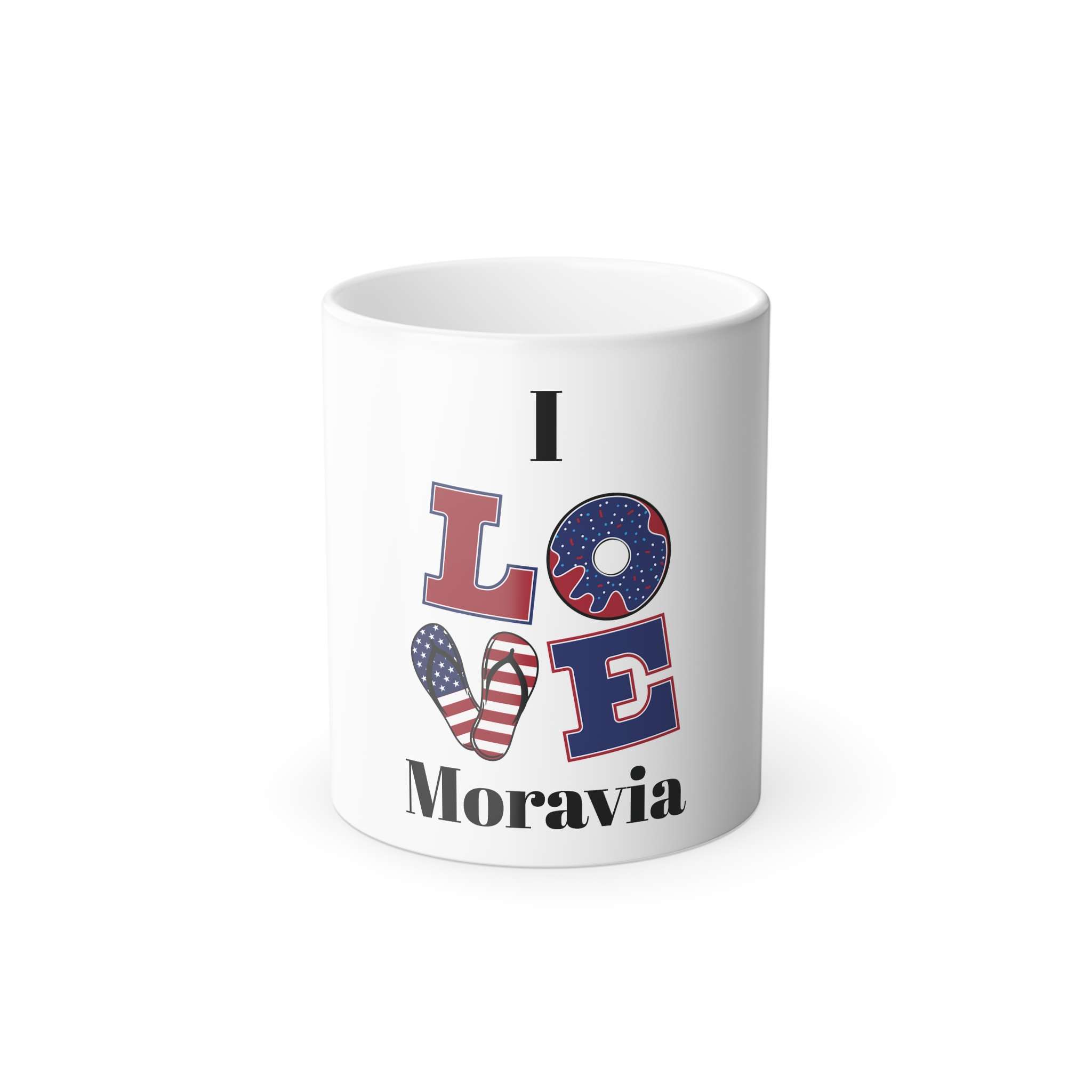Show off your hometown pride with a splash of Americana! This vibrant “I Love Moravia” mug is a heartwarming tribute to small-town charm with a red, white, and blue twist. Each letter of “LOVE” features a unique patriotic design—highlighting donuts, flip-flops, and stars & stripes—making it the perfect mug for celebrating Independence Day, local festivals, or everyday mornings with a bit of flair.