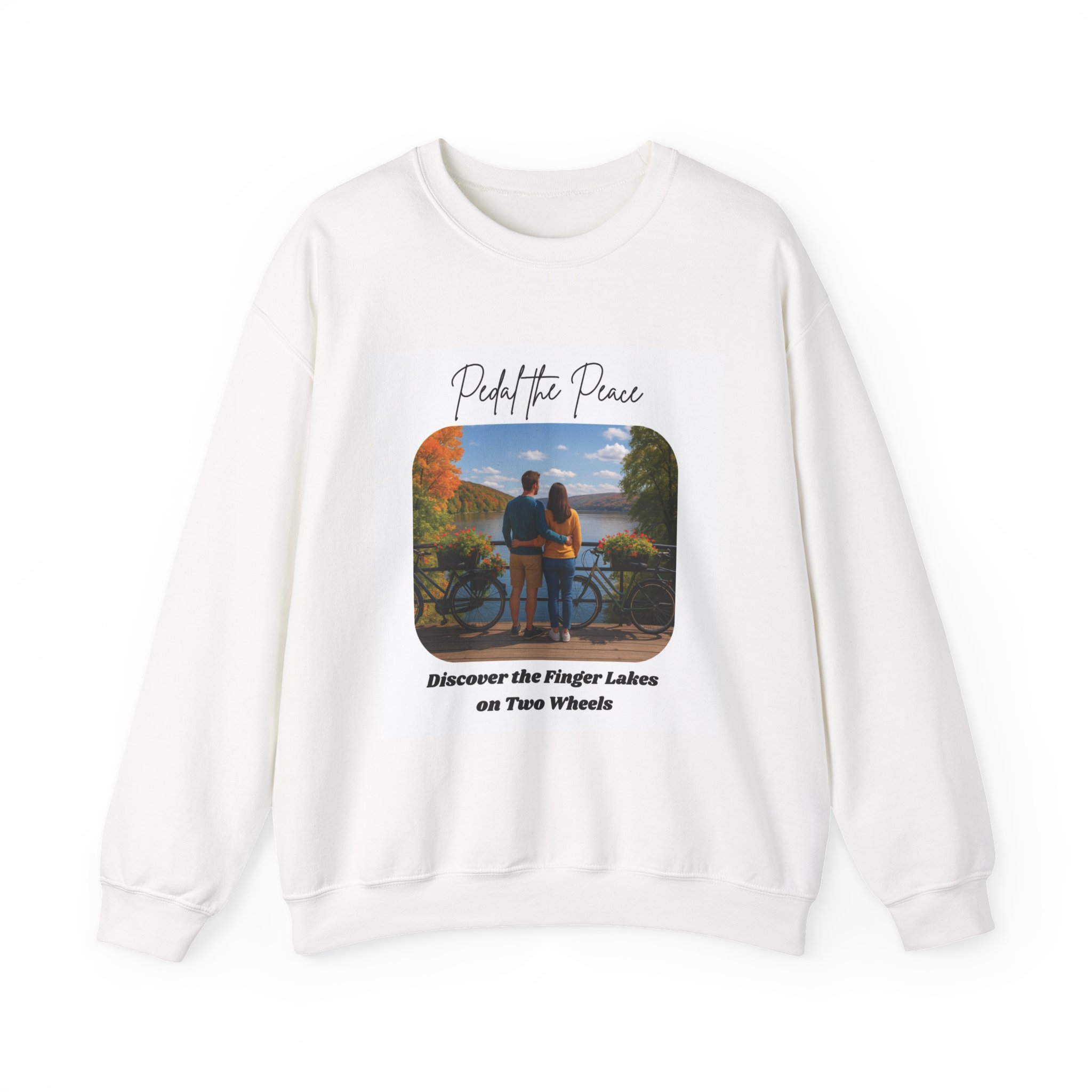 Stay cozy and show your love for the Finger Lakes with this Unisex Heavy Blend™ Crewneck Sweatshirt, thoughtfully designed for comfort, warmth, and adventure. Featuring a vibrant fall lakeside scene with bikes and nature, this sweatshirt is perfect for biking enthusiasts, nature lovers, and Finger Lakes fans alike.